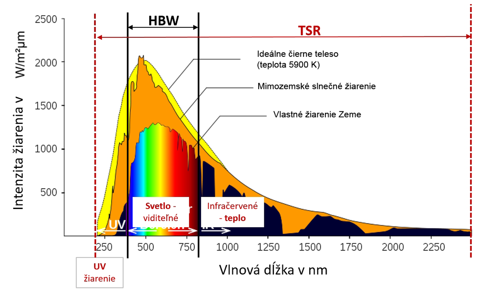 - ↑ Wally Kesler, BASF Corporation, Modeling of Total Solar Reflectance as a Formulation Tool. FIGURE 1—Solar irradiance according to ASTM G 159 (198). Standard solar irradiance at the earth’s surface corrected for atmospheric absorbance. (anglicky) Online Archivované 2018-06-29 na Wayback Machine